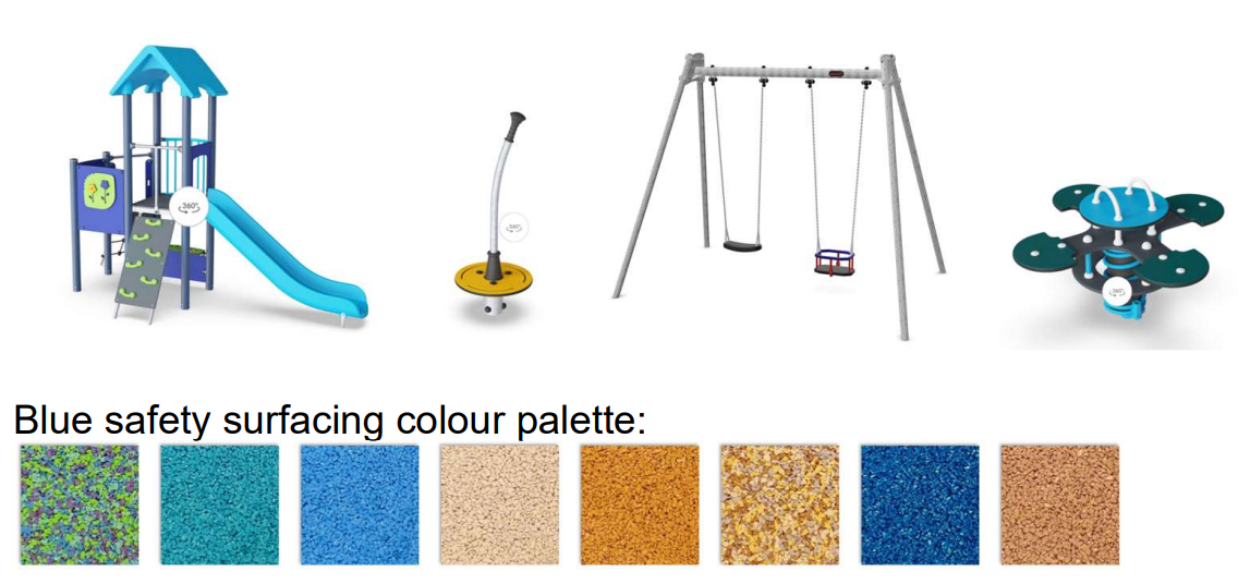 You can access the full moodboards of the two play spaces showing the proposed designs and equipment using the link on the right.