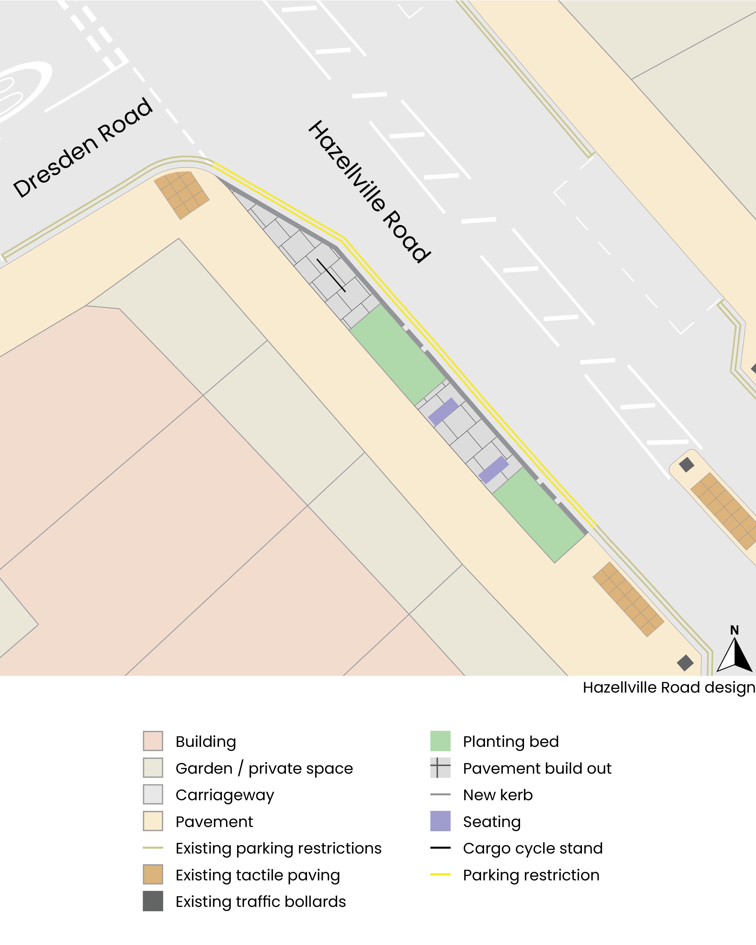 The project site in front of 83–87 Hazellville Road and part of the south side of Dresden Road near its junction with Hazellville Road will be hoarded off during the works. Pedestrian access to all properties will be maintained throughout.