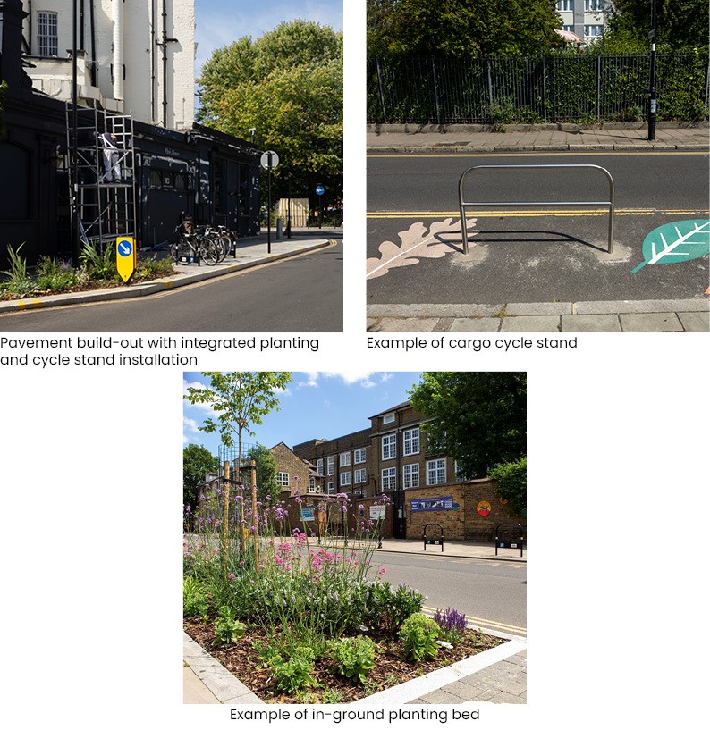New planting beds to enhance biodiversity and contribute to the overall greening of the streetscape.