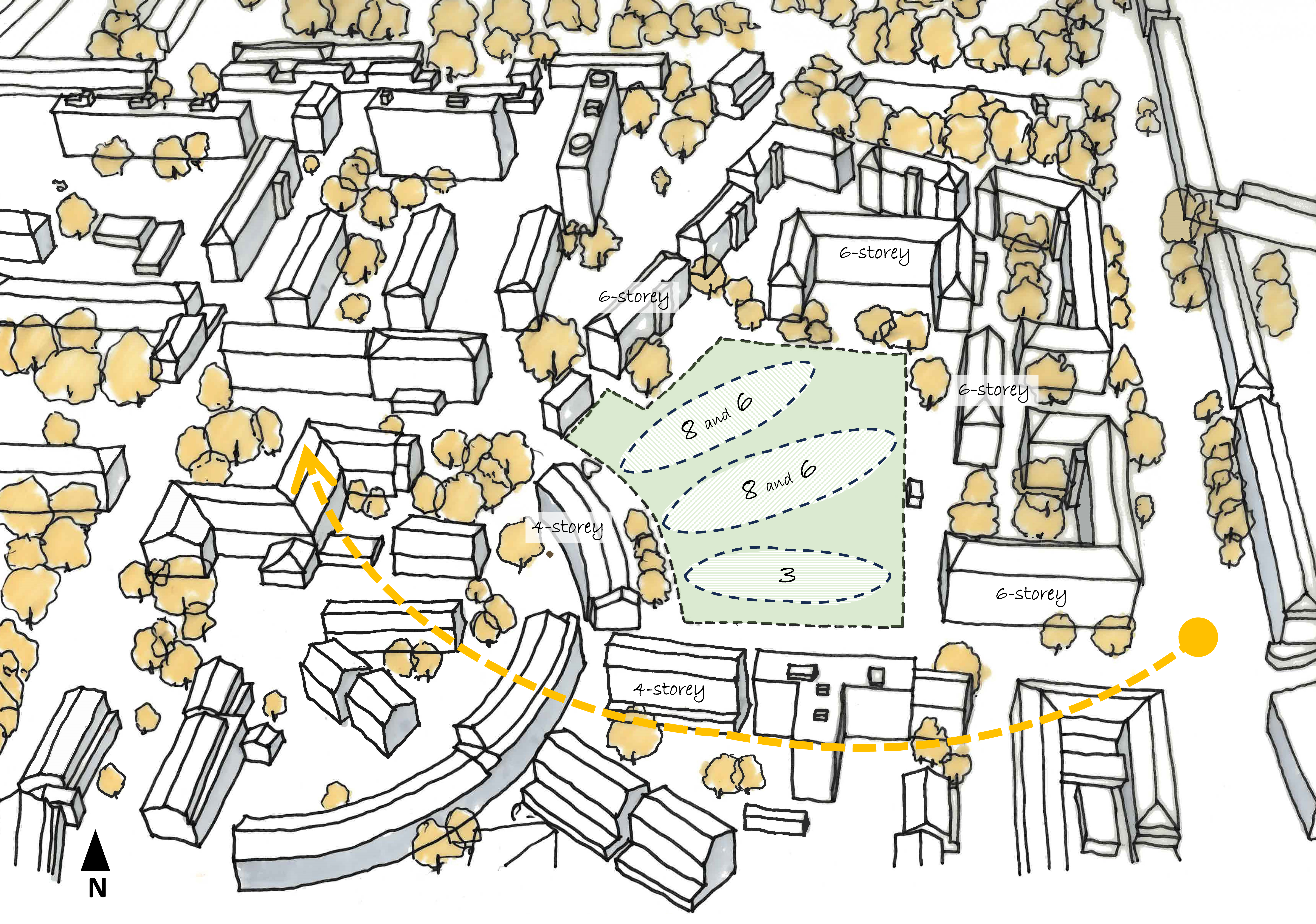The scale and layout of the development could include a mixture of building heights, ranging from 3 to 8 storeys. Taller buildings would be placed in the middle of the site to reduce the impact on sunlight and daylight to nearby homes.