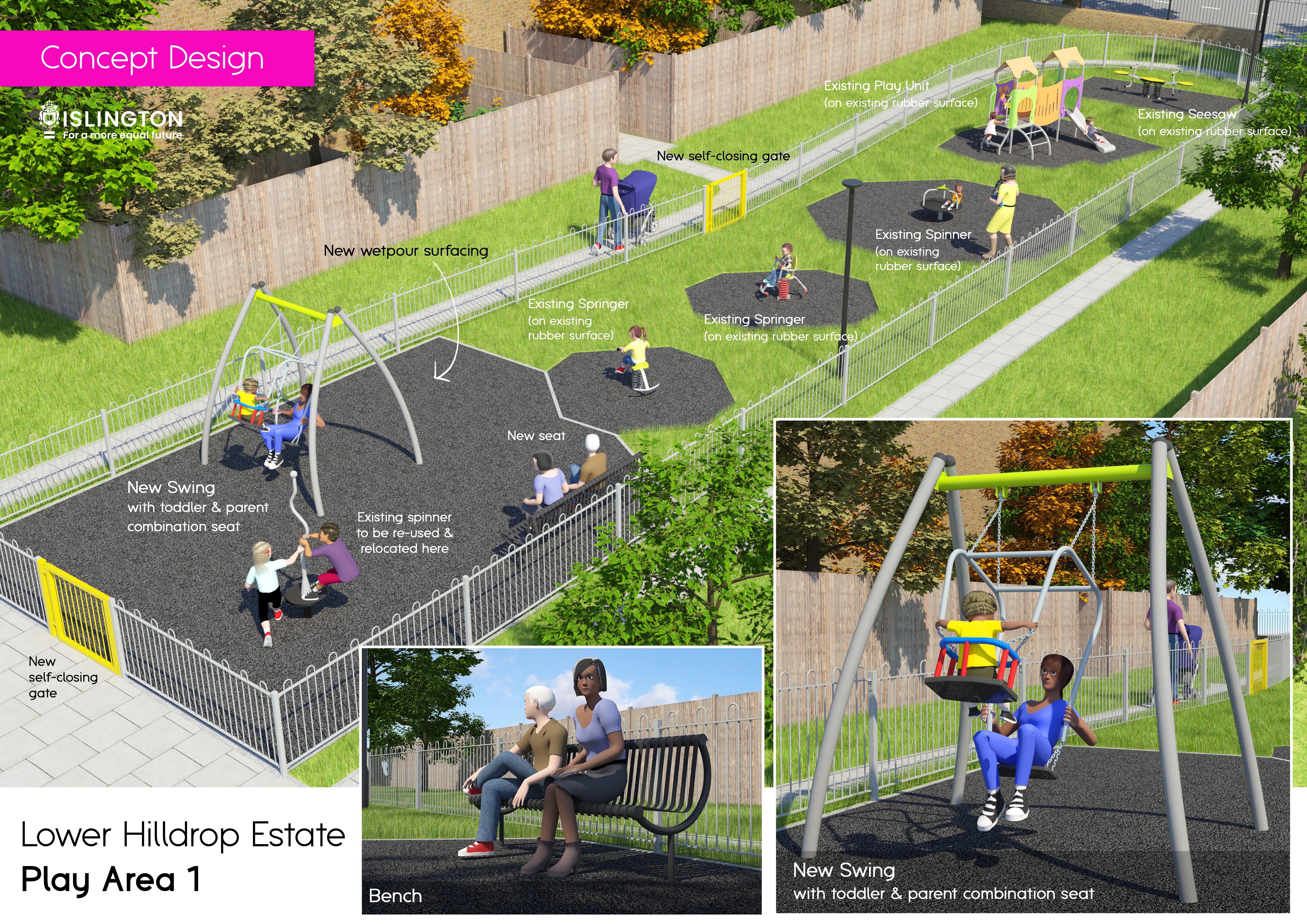 Please complete our survey on Toddler Play Area 1, Junior Play Area 2 and Sport Pitch and Fitness Area, to tell us what you think, so please submit your feedback by Monday 23 February 2026. Alternatively, we have also sent a letter to Lower Hilldrop Estate residents which contains a paper copy of the same survey questions.