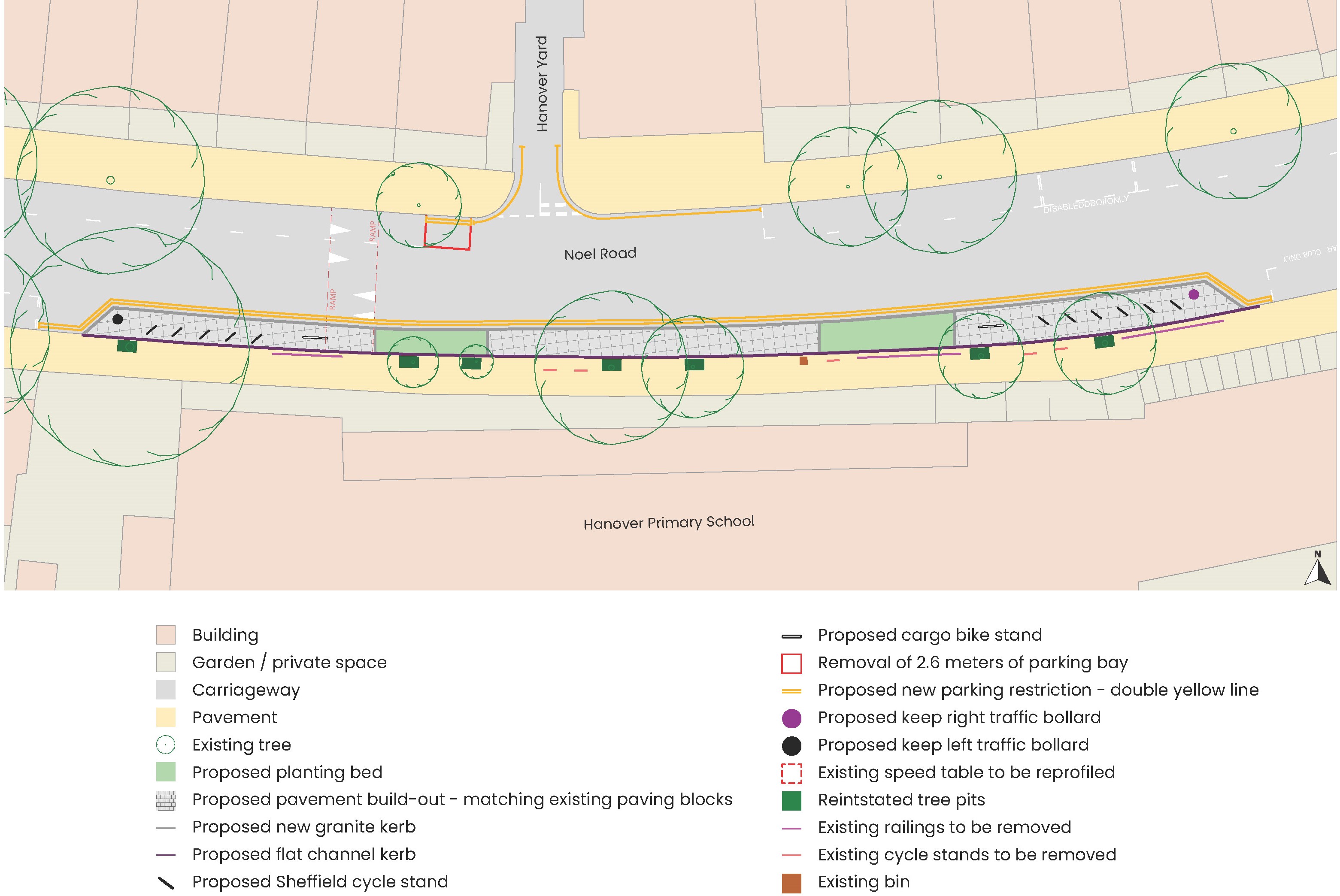 Removal of 2.6 metres of parking space on the northern side of Noel Road adjacent to the junction with Hanover Yard to improve vehicle access and egress from Hanover Yard.