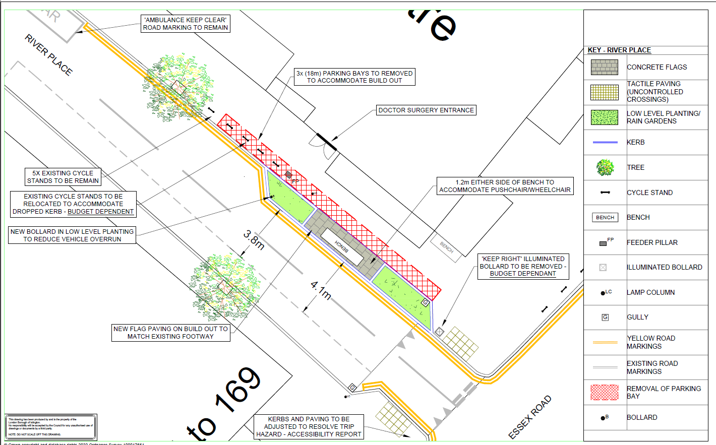 - Adjust the kerb at the junction with Essex Road to improve accessibility