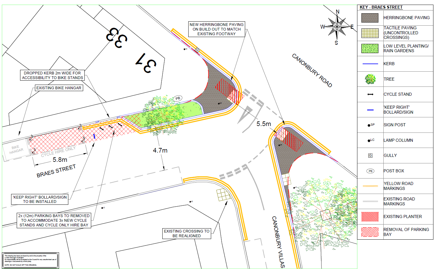 - Extend the pavement at the junction of Braes Street and Canonbury Road to make crossing easier