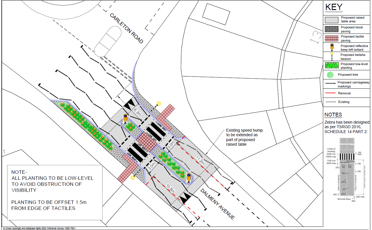 Proposed Design for new zebra crossing on Dalmeny AvenueThese measures reflect priorities shared by the local community and school, aiming to create a safer and more pleasant route for everyone. You can download the proposed design for the zebra crossing here.